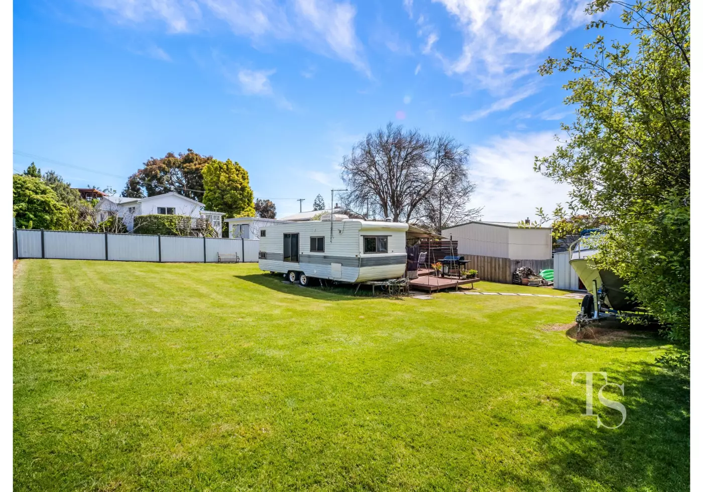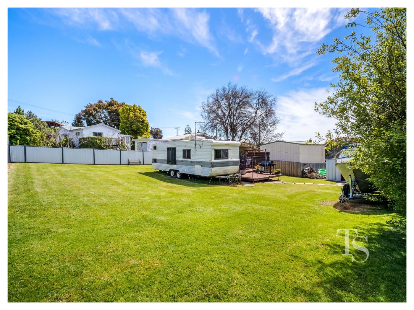 Tucked away in one of Bridport’s quiet residential pockets sits this 551m2 parcel of land with ocean views.  There are 2 on-site caravans with an inbuilt decking area to enjoy the sun and a separate built shed and bathroom. 54A Walter Street is a space that invites you to slow down and embrace coastal living at its most effortless.