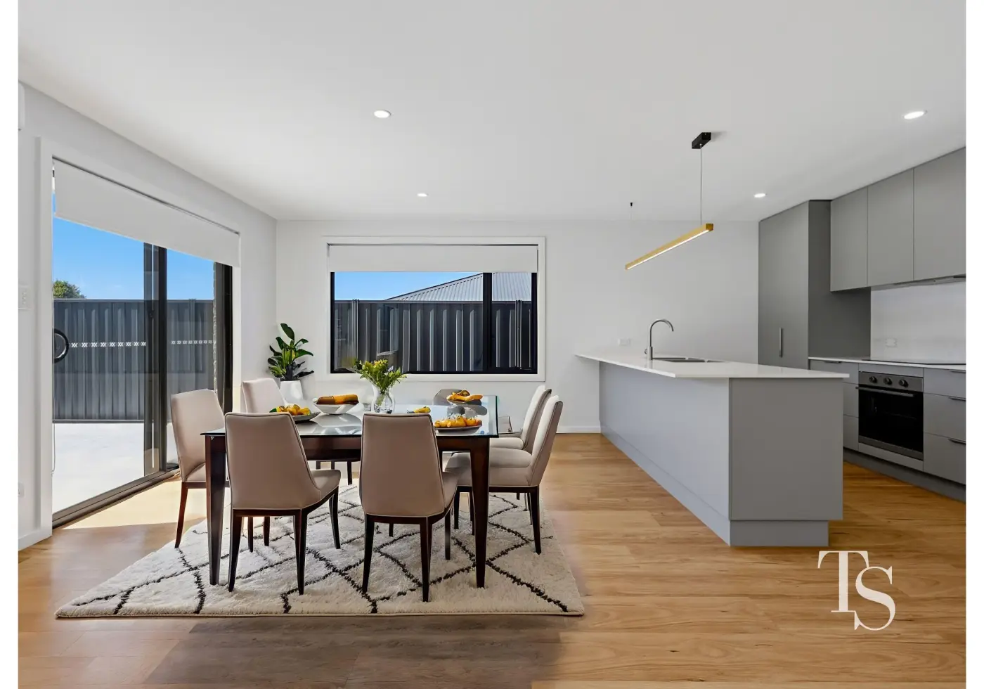 - Modern open-plan living and dining area filled with natural light